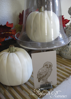 Hi Aimee, your Fall decorations are So Pretty!!! ♥ I love the vintage Halloween postcard! Your centerpiece and the white pumpkins are also lovely! Beautiful home! I hope you are enjoying the season! xx